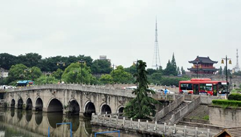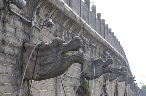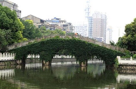 四、九龙渊桥:古城每个门口均有一座石桥与城对岸相连接,而东正门的那座桥的两侧各有九条石雕的龙头。九龙渊桥是“文革”期间修建的,在那“备战备荒为人民”的年代,据说当时有一个没亮明身份的军人对工人们说:这个桥要做扎实点,今后要走坦克的。后来才知此人是武汉军区的一位副司令。