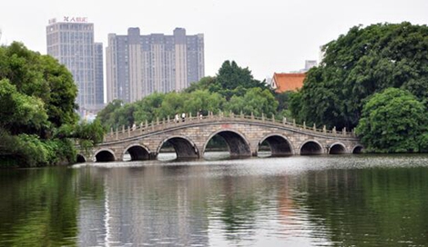 五、新便河桥:1960年,便河桥让位于北京路的开辟,然而人们对便河桥的怀念之情与日俱增,1989年决定重建便河桥,新便河桥北移800米,改三孔为九孔,横卧于秀丽的便河与江津湖之间。