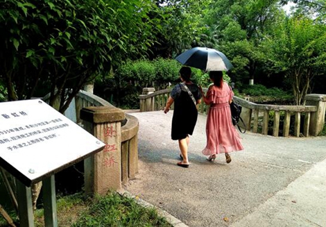 六、卧虹桥:1935建成的卧虹桥是荆州建桥史上的第一座钢筋水泥现浇桥,因该桥的造型呈弧线状,故名卧虹,取长虹卧波之意。图为中山公园内的卧虹桥。