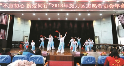 1月13日,以“不忘初心携爱同行”为主题的2018年掇刀区志愿者协会年会在区会议中心举行,一批优秀志愿者标兵、优秀志愿者、爱心人士、爱心商家以及优秀志愿者团体受到表彰。目前,掇刀区志愿者协会会员已发展到300余人。何梦雪摄