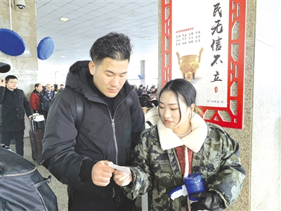 昨日,荆门火车站一天发送旅客1.31万人次。据统计,春运22天已累计发送旅客13.9万人次,同比去年增长9%。为方便旅客顺利乘车,荆门火车站组织了18名志愿者,为旅客提供贴心服务。荆门晚报记者刘娇通讯员王雪芹摄