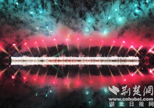 千雷显豪放,万花印天红。在长约30分钟的晚会中,4万枚礼花腾空绽放,有如鲜花怒放,又似流星飞舞,形成了火树银花不夜天的壮丽奇景,表达长寿钟祥首进百强的喜悦心情,为钟祥百万市民献上了一场视觉盛宴。
