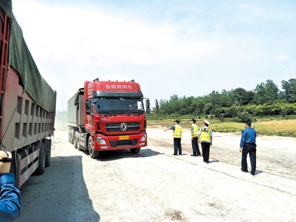 在子陵应急通道葛洲坝水泥厂路段,大货车来来往往,道路上尘土飞扬。执法人员拦下一辆满载粉煤灰的大货车,司机出示过磅单显示,该车车货总重71.8吨,远远超过该车核载标准(31吨)40.8吨。执法人员还发现,该车过磅单上的车号与该车不符,司机解释,出厂过磅系统里没有该车车号,过磅员随意输了个车号进去。最终这辆货车被暂扣。