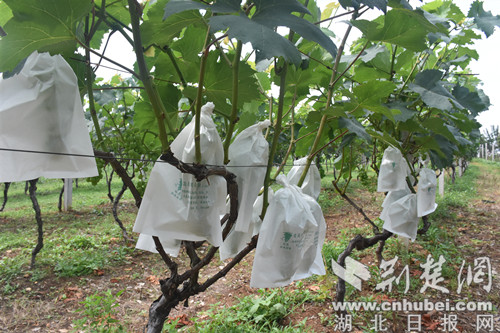 荆楚网客户端-荆楚网消息(通讯员张嘉)6月的荆门京山市钱场镇刘岭村,瓜果飘香。该村的生态采摘园翠绿色的枝叶间,缀满了硕大饱满的桃子,葡萄藤下一串串晶莹剔透的葡萄散发出诱人的清香,村民们正在葡萄藤下除草。