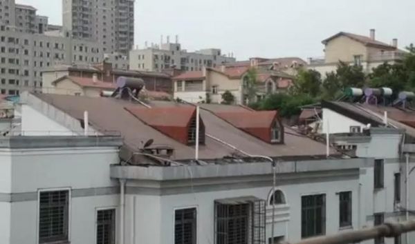 阁楼外本是公共区域,却被户主搭建了一个临时违建板房,还修建了厕所。正是这个厕所挡住了楼顶雨水排水口,导致雨水无法排出。