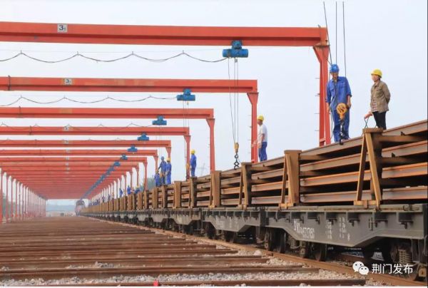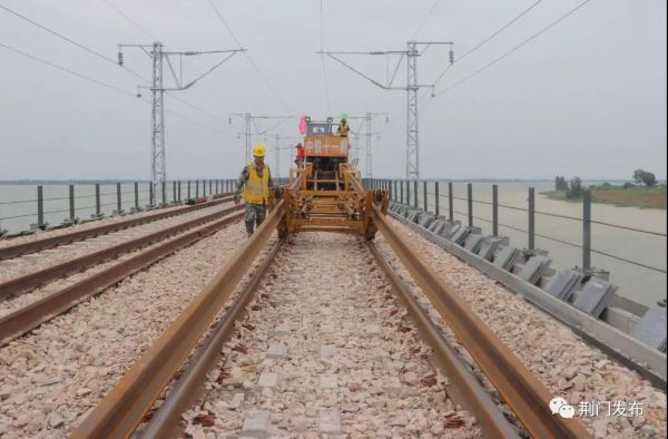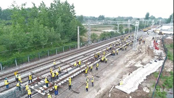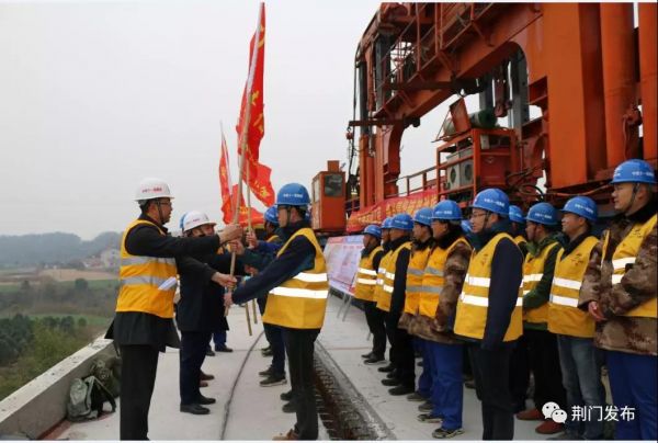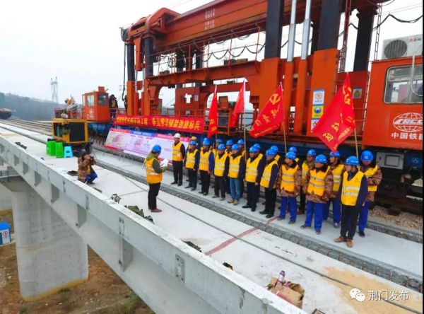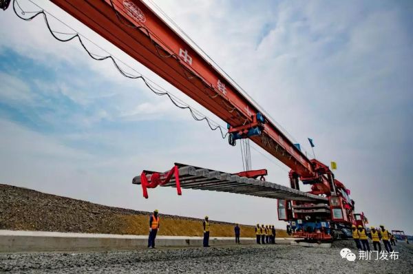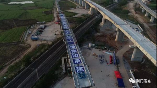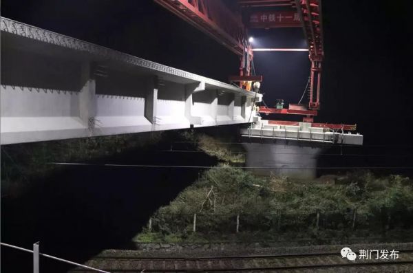 2018年12月7日上午,位于东宝区牌楼镇长兴村的新建蒙华铁路上跨长荆(铁路)线特大桥架梁顺利完成。由此蒙华铁路荆门往岳阳方向的架梁通道全部畅通,后续架梁施工进入“快车道”。