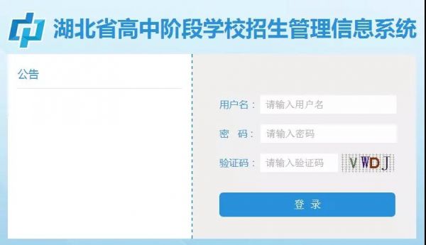 志愿必须由考生在规定的时间内,登录“湖北省高中阶段学校招生管理信息系统” http://gzjd.hubzs.com.cn/(“用户名”为中考报名号,初始密码为身份证号后6位数,验证码随机提供)自主填报。