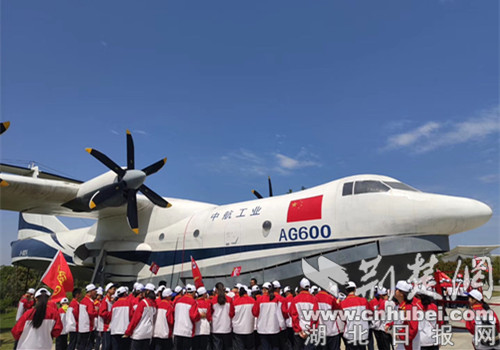 参观大型水陆两栖飞机AG600模型。通讯员供图
