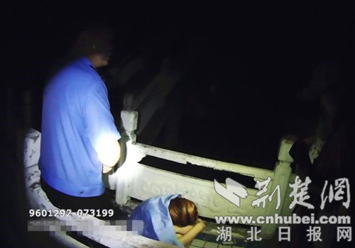 7月8日凌晨0:50分,京山市公安局新市派出所接到群众报警,称一年轻女子喝醉了钻进惠亭水库大坝围栏可能要跳水轻生。副所长徐中科迅速带领4名民辅警赶到惠亭水库大坝,在北闸口的湖边亭找到了报警群众和涉事少女筱雨(化名)。此时的筱雨站在离水面10多米高的湖边亭栏杆外哭着要轻生,她的几位朋友正在一旁尽力劝说,现场险象环生。