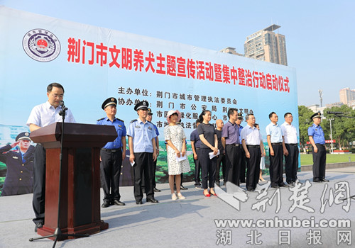 荆楚网客户端—荆楚网消息(记者 安从斌 通讯员 周虎平)7月10日上午,荆门市文明养犬主题宣传活动暨集中整治行动启动仪式在天鹅广场举行。
