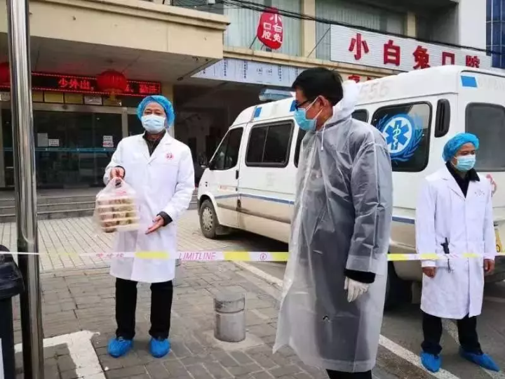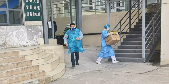 ▲安贞医院隔离留观点的午餐交接(受访者供图)