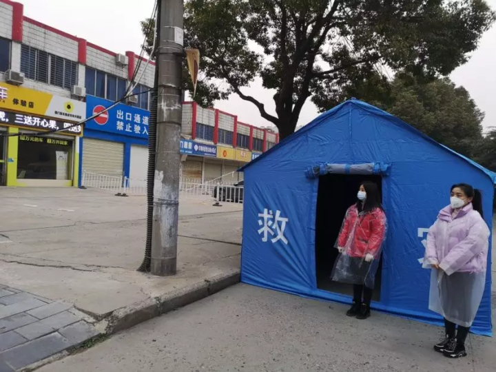 记者跟随街道工作人员探访了城区几处集中隔离点。记者在现场看到,荆门安贞医院大门玻璃上张贴了“发热病人临时留观点”等字样的告示,距离大门近10米的位置围起了警戒线,警戒线内停靠着一辆医用救护车,靠近警戒线边缘搭着一个临时的帐篷,这是社区工作人员的24小时值守点。据了解,进出医院都有严格规定,除警察和医护人员外,其他人员一律不得靠近警戒线。