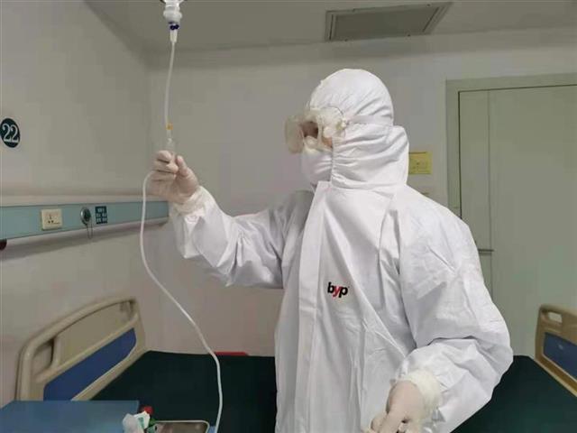 需隔离观察的病人均独处一室,易出现心理问题,做好心理引导是病区医护人员的一项新挑战。一名46岁中年妇女因发烧被送来医院,情绪十分激动。护士李珊发现苗头后,积极劝说引导,护士轮流24小时陪护,病人情绪逐渐平静和稳定下来。经过咽拭子和CT检测,该名妇女只是普通感冒引起的发烧,经过治疗后,已痊愈出院。