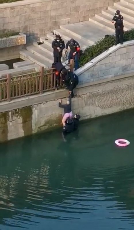 2020年2月19日下午4时,荆门市一位老人因事想不开,跳入龙泉公园文峰塔附近的河内,随时有生命危险!接到报警后,荆门市公安局巡特警支队海慧警务站快速到达现场。