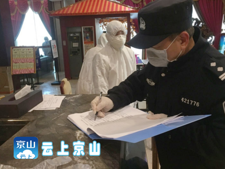 现年56岁的森林公安局直属中队民警王东进去年10月刚做完一场手术,不待完全恢复,就主动请缨奔赴战疫一线。2月3日刚从月堰湾社区执勤卡口下岗的他,得知市局需要安排人员参加豪威凯瑞酒店隔离点安保工作,他第一时间向教导员沟通请战:“我就住附近,回家收拾收拾,就能第一时间报道。”从2月4日起,他已经在这个留观点工作20多天了,成了这里名副其实的“万能员”。