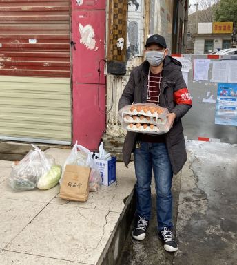 2月23日下午5点多,泰华楼卡口集中隔离的人员回家了。做完测温、登记和政策宣传工作后,2名隔离人员说:“我们14天没有回家,家里面什么都没有,我要去自己的店里拿点生活物资”。孔涛不加思索回答道:“没问题,我来帮你。”帮忙搬完液化气罐、大米和锅碗瓢盆,夜色已深……