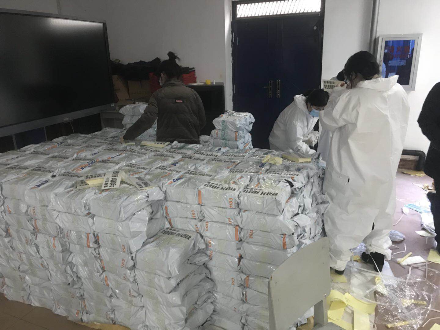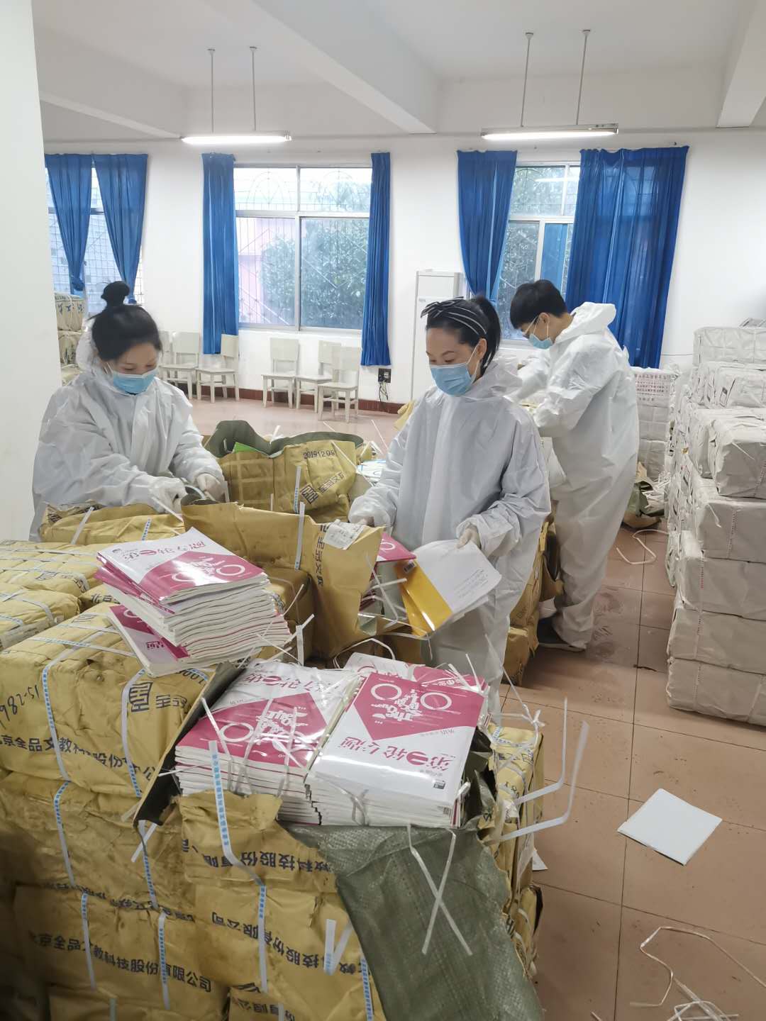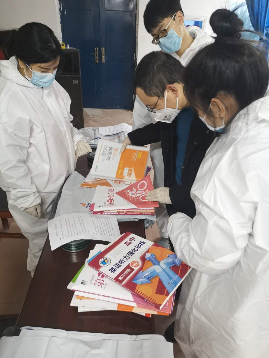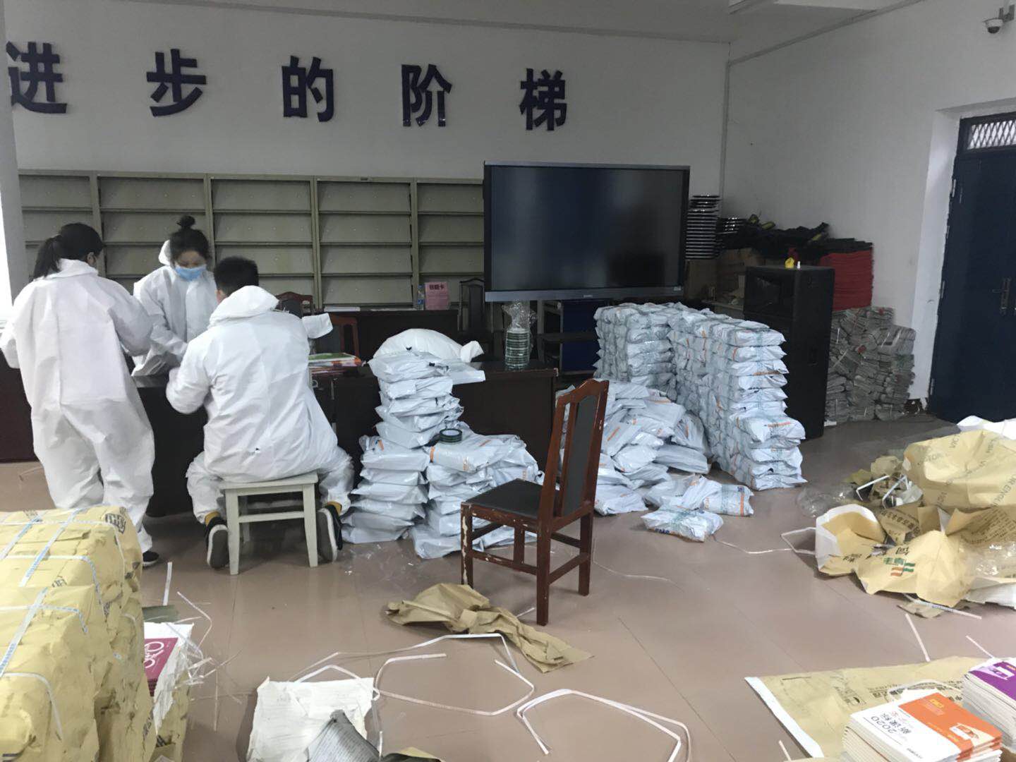3月9日上午,荆门邮政城区分公司抽调多名党员骨干深入龙泉中学、掇刀石中学等城区多所中小学教辅课本收寄现场,力争将1400多套教辅课本通过邮政特快专递,安全又迅速地送达到居住在城乡的1400多名学生手中。配书、分装、包装、贴单、消毒、分拣... ...收寄现场每个环节都井井有条。目前,1400多套教辅课本已全部进入配送环节,力争在10日完成全部配送,让孩子们在家也能安心学习。