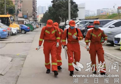 当日,消防站接到掇刀石街道白石坡社区求助后,迅速派出队伍到达关公园南区。在与社区工作人员进行短暂沟通后,4名队员穿戴好防护装备,身背喷雾器,认真地对每条巷道、每个角落进行了全覆盖、无死角的消杀工作。