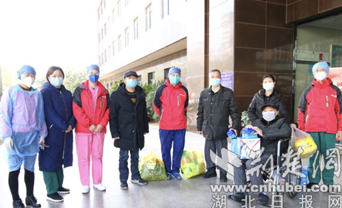 2月末,肖老师、代大爷、代大爷的女儿代女士以及龙先生转入荆门一医11楼病区,该病区由浙江援荆门的台州医疗队接管改建。经过医护的精心治疗,4人病情明显好转,脱离生命危险,先后于3月6日、7日转入普通病区。在普通病区接受进一步治疗与评估之后,这4人达到新冠肺炎患者治愈标准,获准出院。