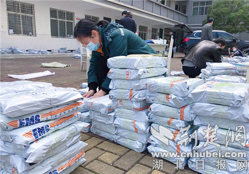 荆楚网客户端—荆楚网消息(记者 安从斌)为减轻学生长期使用电子教材对视力造成的不良影响,根据荆门市新冠肺炎疫情防控指挥部统一部署以及荆门市教育局的相关安排,荆门市一中联合荆门邮政,从3月15日起开始将近千份教材快递到离学校较远或滞留在外地的学生手中。