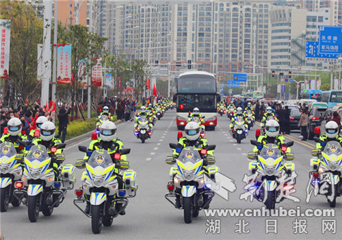 欢送仪式结束后,荆门公安警车开道,铁骑护航,以最高规格护送浙江省援荆医疗队离荆。