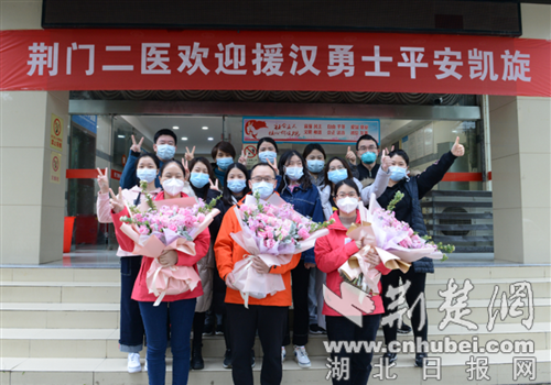 荆楚网客户端—荆楚网消息(通讯员 郑琴清、张华)3月28日,伴随着红锦假日酒店门前的一阵欢呼声,荆门二医驰援武汉金银潭医院的3名医护——石炎平、唐庆琳、张臣臣,圆满完成任务,平安归来。他们将在此接受14天的医学隔离观察后,回到工作岗位、与家人团聚。