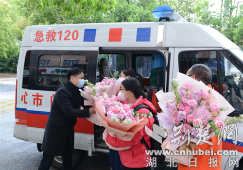 “平安就好,回来就好!”荆门二医院长郑小艳边念叨,边为凯旋的“勇士”献上鲜花。得知消息的家属也赶了过来。现场没有拥抱,每个人都保持着安全距离。郑小艳对支援医护家属的理解与支持表示感谢。