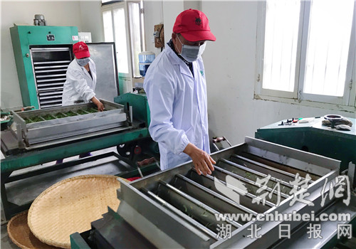 蔡高凡正在操作间检查茶叶质量。通讯员供图