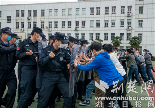 荆楚网客户端—荆楚网消息(通讯员 徐娟、曾旋)为有效应对疫后各类社会治安问题反弹,有力推进全警春季大练兵,4月6日下午,京山市公安局投入120名警力,组织全局各警种开展了一次应急处突综合演练。