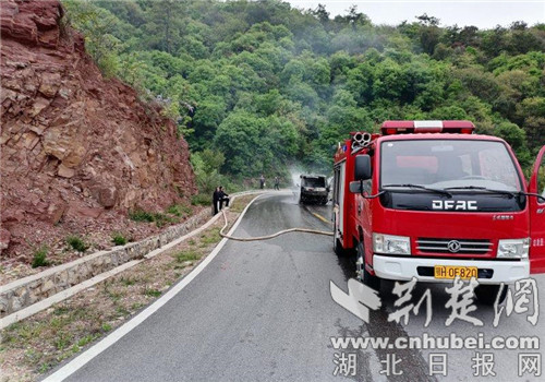 4月13日17时许,栗溪派出所值班民警接到辖区大泉村村民周某打来的求助电话,称其驾驶的公路养护洒水车行驶至栗溪镇杨坡路段时突发自燃,情况紧急,请求民警迅速前往救援。
