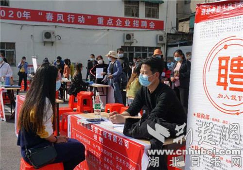 荆楚网客户端—荆楚网消息(通讯员 周勇、吴芬芬 )4月16日,由钟祥市人社局主办的钟祥市2020年“春风行动”重点企业招聘暨精准扶贫专场招聘会,在市人力资源市场举行。武汉联想、武汉富士康等市外大型企业派专人到场招工;东林服装、武住电装、龙行天下体育用品等55家市内重点用工企业现场招聘,为求职者提供技术、销售、文员、普工等类型的职位近2000个。