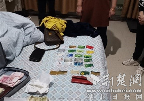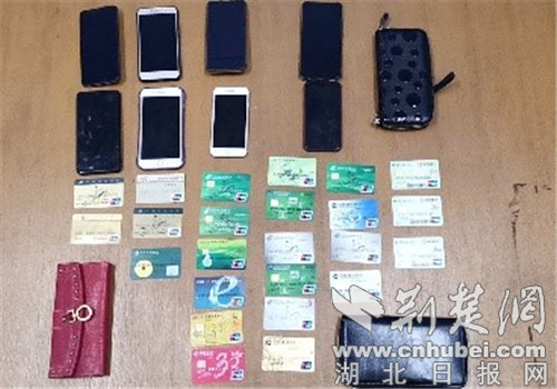 被查获的银行卡、手机等作案工具。通讯员供图