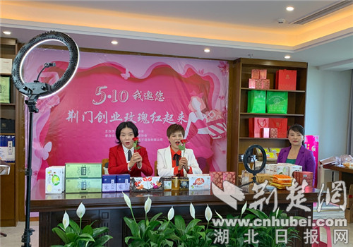 荆楚网客户端—荆楚网消息(通讯员李慧敏 胡晓莉)为重塑女企业家创业信心,带动巾帼创新创业,5月10日下午,荆门市妇联主席曹红姣联合女企业家协会,开展“5•10,我邀您:荆门创业玫瑰红起来”直播带货,短短2个小时,成交额近30万,销售产品近5000件。