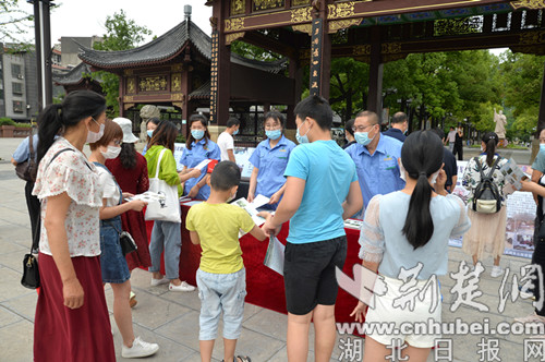 荆楚网客户端—荆楚网消息(通讯员 刘草、许红)“公园里不能乱扔垃圾。”“请不要站在草坪上拍照。”5月24日,荆门市城市公园管理处组织人员,在龙泉公园开展了“文明与旅游同行,健康与平安共赢”主题活动。
