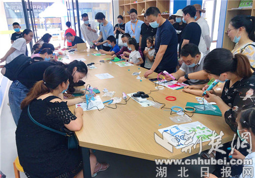 孩子们体验3D打印绘画涂鸦。记者安从斌摄