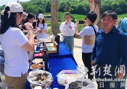 6月4日为活动第一站——京山市,媒体记者上午在京山市绿林镇高枧村参观当地桑葚产业基地、铁皮石斛种植基地,采访脱贫村民,了解高枧村因地制宜发展产业,带领全村村民脱贫的故事。