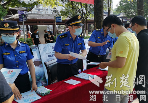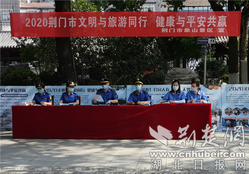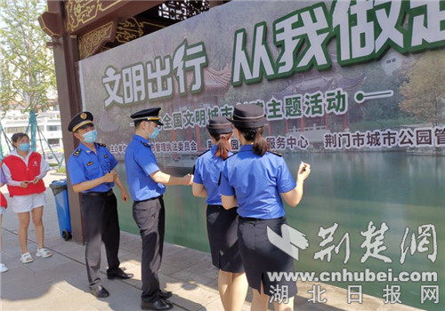 荆楚网客户端—荆楚网消息(通讯员 伍鹏)连日来,荆门市城市管理执法委员会带领市园林绿化服务中心、荆门市城市管理执法督察支队等所属单位,在龙泉公园开展了以“文明与旅游同行,健康与平安共赢”为主题的宣传活动。