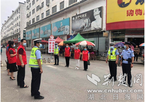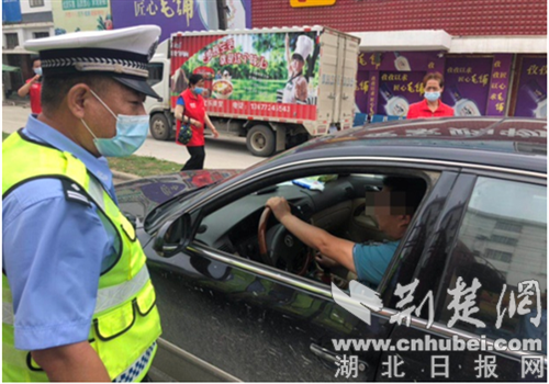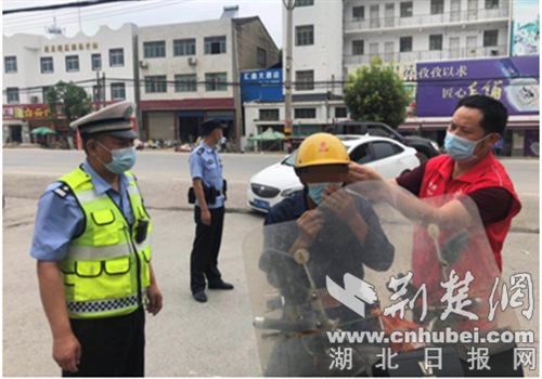 荆楚网客户端—荆楚网消息(通讯员 黄翔、周楚津)6月12日中午,在荆门市沙洋县拾回桥镇北街十字路口,几名身穿红马甲的义工志愿者正在协助执勤交警,对过往机动车驾乘人员不戴安全头盔、不系安全带的行为进行劝导。