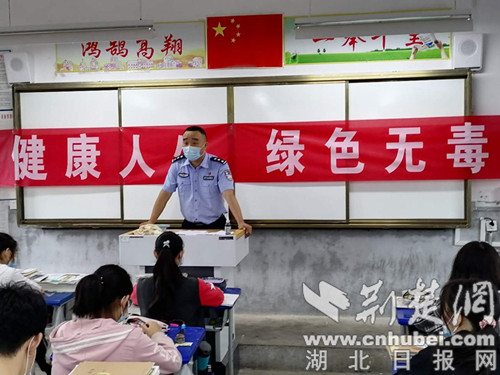 荆楚网客户端—荆楚网消息(通讯员 李兵)6月22日上午,荆门市公安局东宝分局栗溪派出所联合镇综治办到栗溪实验中学开展了“健康人生 绿色无毒”禁毒知识讲座。