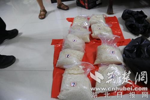 荆楚网客户端—荆楚网消息(通讯员 沙公宣)6月24日,荆门市沙洋县公安局对外公布,沙洋警方近期打掉一个外地贩毒团伙,抓获7名涉案嫌疑人,缴获冰毒9公斤,查获涉案资金400余万元。