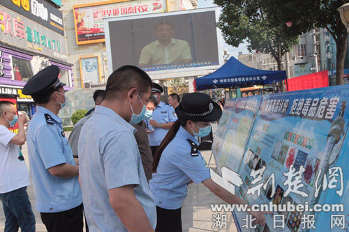荆楚网客户端—荆楚网消息(通讯员 冯波)6月25日,钟祥市公安局采取“线上+线下”同步宣传的方式在阳春广场举办以“全民禁毒,健康生活”为主题的国际禁毒日宣传活动。