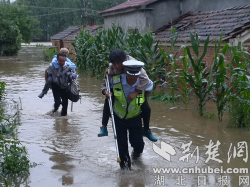 麻城派出所值班民警陈书平带领辅警在官堰村高速公路桥洞下协助救援、疏导涉水车辆,协助救援四辆,劝导十余辆汽车。