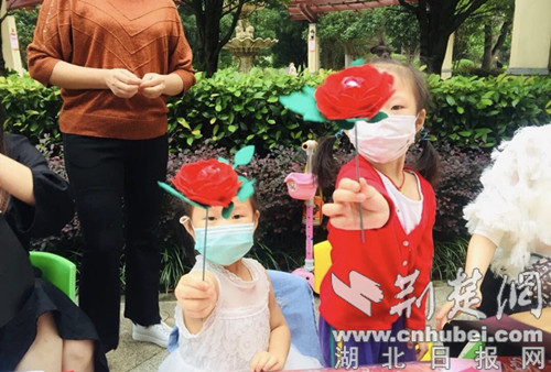 活动中,童梦之家的卢老师从如何套花瓣、调整花瓣形状等方面一步一步做了详细介绍,“做手工花是一项培养人耐心的活动,大家慢慢来,不着急。一旦摸到窍门,学起来一点也不难”。在老师认真细致的指导下,大家手持打火机不断热熔胶棒,从绕花瓣、贴叶片、包装花束,一步一步制作得十分认真。很快,一朵朵鲜艳欲滴的花朵在大家手中“盛开”。