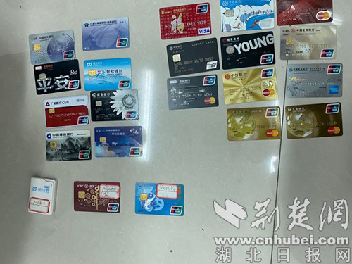 民警在抓捕现场查获的银行卡。通讯员供图