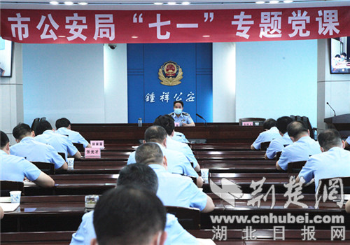 宣讲活动中,钟祥市副市长、公安党组书记、局长杨剑通过视频连线的方式,以“在不忘初心中坚定信仰 在实干担当中砥砺前行”为主题,为全体党员民警辅警上了一堂生动、鲜活、深刻的主题党课。