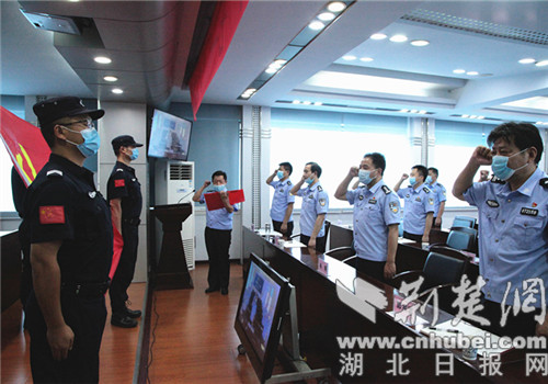 荆楚网客户端—荆楚网消息(通讯员 冯波)“我志愿加入中国共产党......”7月1日上午,在火红的党旗下,伴随着掷地有声、铿锵有力的铮铮誓言,钟祥市公安局庆祝建党九十九周年主题党课宣讲活动拉开帷幕。