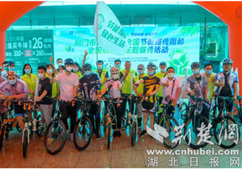 本次活动还有20名骑行爱好者组成的方阵,在自行车上装置了节能低碳宣传标语旗帜,启动仪式结束后,骑手们骑行开展节能减排主题宣传活动。