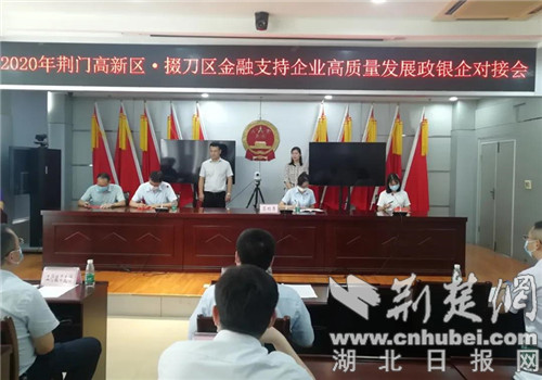 荆楚网客户端—荆楚网消息(通讯员 周芳、罗倩) 7月9日,荆门高新区·掇刀区召开金融支持企业高质量发展政银企对接会。会上,工行掇刀支行、农行掇刀支行、建行掇刀支行、农商行掇刀支行4家金融机构与全区8家企业签约贷款意向协议4.8亿元。