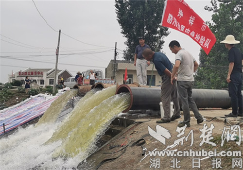 荆楚网客户端—荆楚网消息(通讯员 赵自云、赵阳)7月14日下午4时,钟祥市防汛抗旱应急抢险队在仙桃市西流河镇华湾闸,顺利安装好12台套、80千瓦/台的潜水泵,只见12支又圆又粗的钢管向堤外喷吐着水龙。