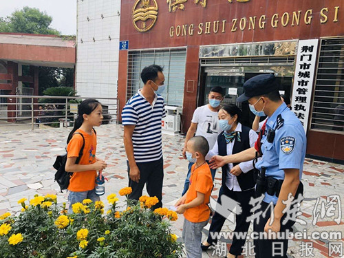 荆楚网客户端—荆楚网消息(通讯员 贺林辉)7月23日,一名7岁男孩与家人在荆门龙泉公园游玩时不慎与父母走散,好在荆门市公安局巡特警支队海慧警务站民警及时发现,将小孩平安交给父母手中。